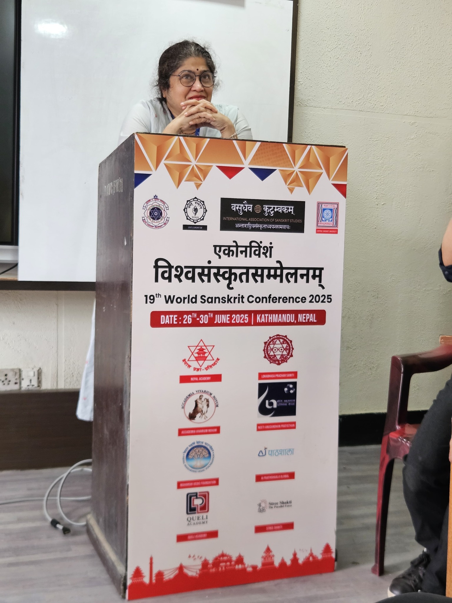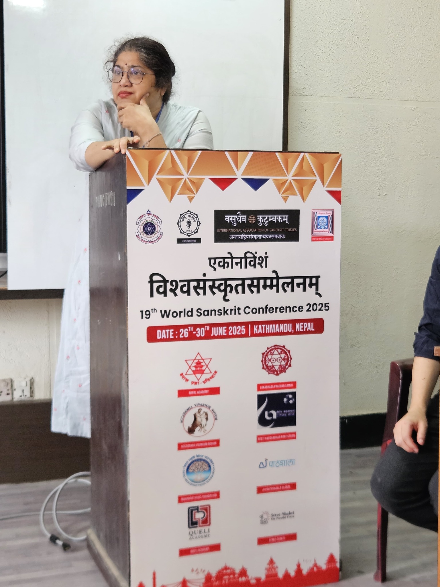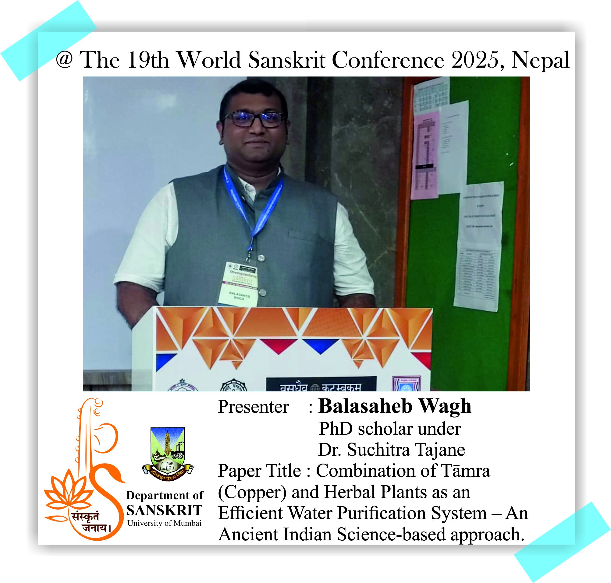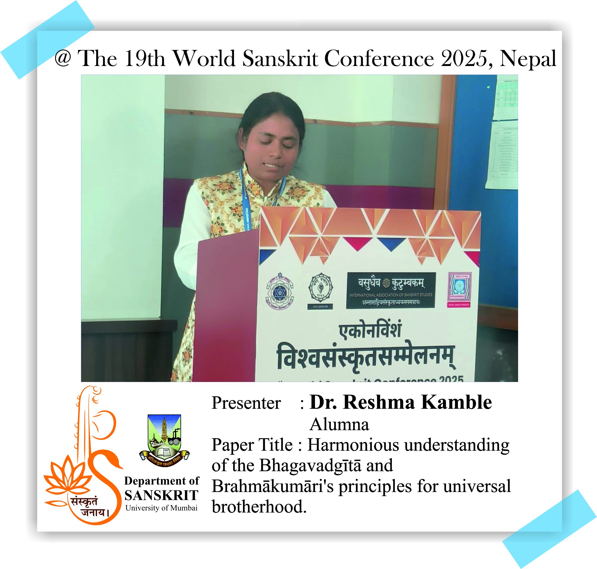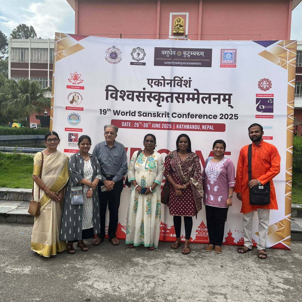 The Department of Sanskrit, University of Mumbai is proud of its alumni and students who presented their research papers at the 19th World Sanskrit Conference 2025, Nepal. Continuing the Sanskrit Department’s legacy of research, our former Head, Dr. Madhavi Narsalay, not just presented her research paper but also worked on two joint papers with our department faculty, Miss Renuka Panchal and Dr. Chinmayi Deodhar. Head and associate professor Dr. Suchitra Tajane was awarded by Best Research Paper Award. Her topic was Personality of Avantisundari in Kavyamimamsa.. Dr. Madhavi Narsalay, former head and associate professor of the department of Sanskrit, University of Mumbai, presented a paper titled ‘Dadhici – An Enigmatic character in mythology’ at the 19th World Sanskrit Conference 2025, Nepal .PhD holders and PhD scholars of the Department of Sanskrit, University of Mumbai, presented their research papers at the 19th World Sanskrit Conference 2025, Nepal.